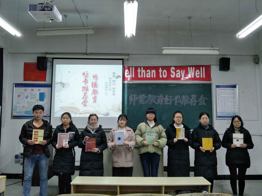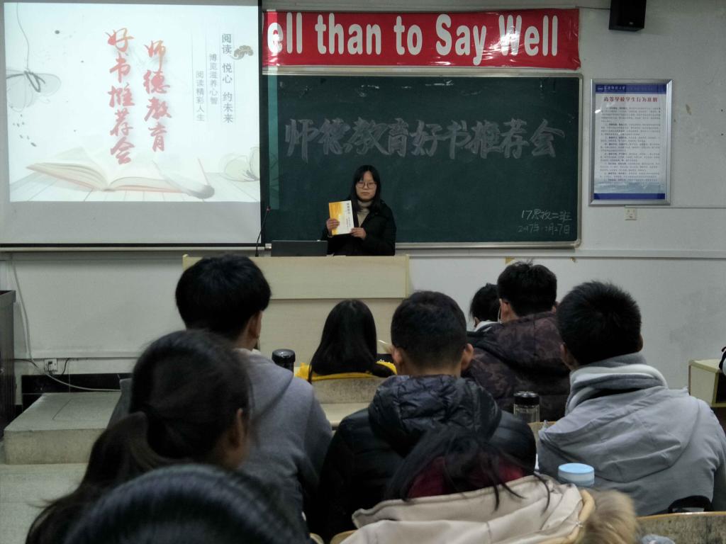 12月27日晚,公司2017级思想政治教育二班团支部举办的师德教育“好书推介会”在B107教室顺利举行。推介会由班级学习委员主持,班级全体同学积极参与。