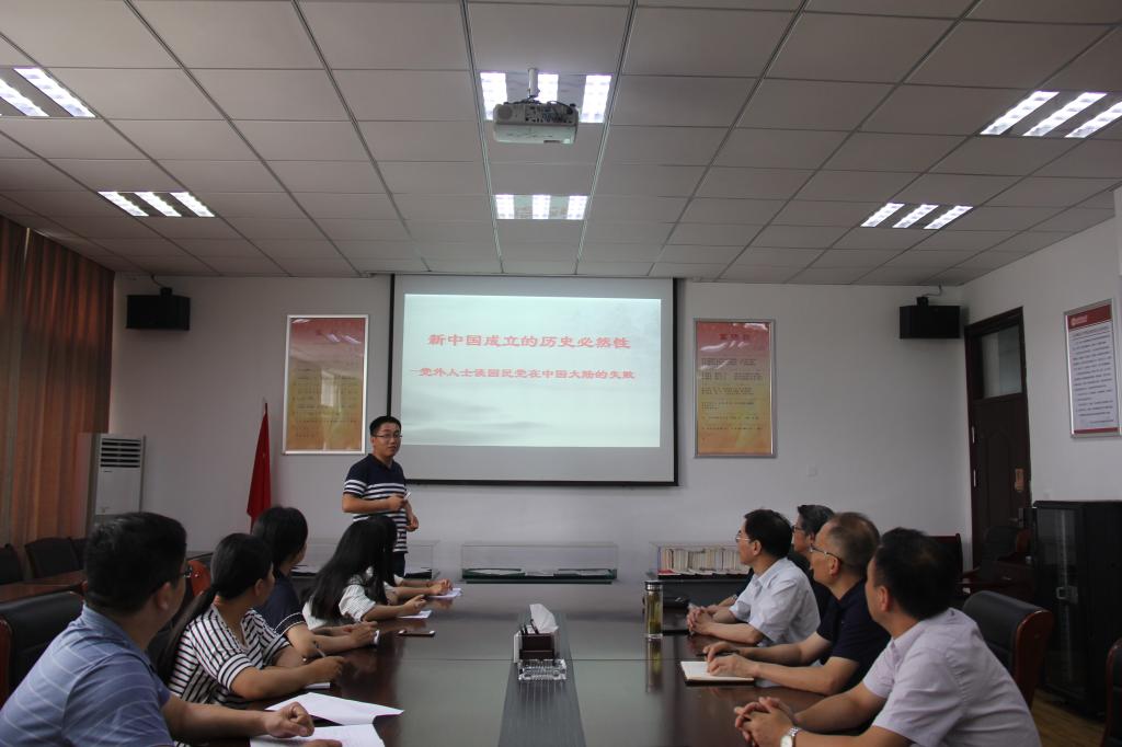 在思政课集体备课会上,公司方伟博士讲解“新中国成立的历史必然性——党外人士谈国民党在大陆的失败”,公司党政班子、教师和员工代表提出了许多好的建议和意见。经理罗本琦提出,随着一个旧的政权走向衰亡,注定将会有一个新的政党出现,中国近代史的苦难充分说明,这个新的政党必须也只能是中国共产党,没有共产党,就没有新中国。备课会上,与会人员还针对“中国共产党是抗日战争中的中流砥柱”这一主题畅谈,认为在抗日战争期间,中国共产党始终不渝坚持抗战、团结、进步,反对妥协、分裂、倒退,是中国人民的坚强政治核心。