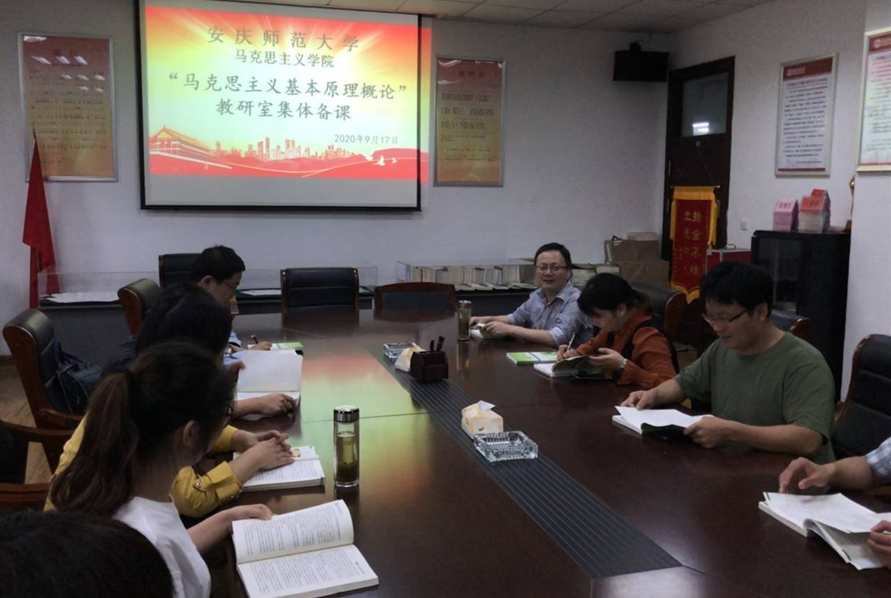 9月17日下午,“马克思主义基本原理概论”教研室在文源楼B205教室开展集体备课会。“马克思主义基本原理概论”教研室教师通过线上线下相集合的方式参加集体备课会。