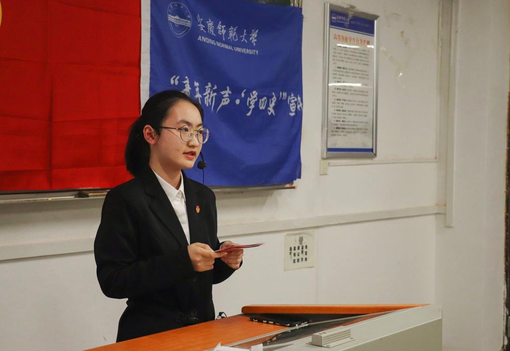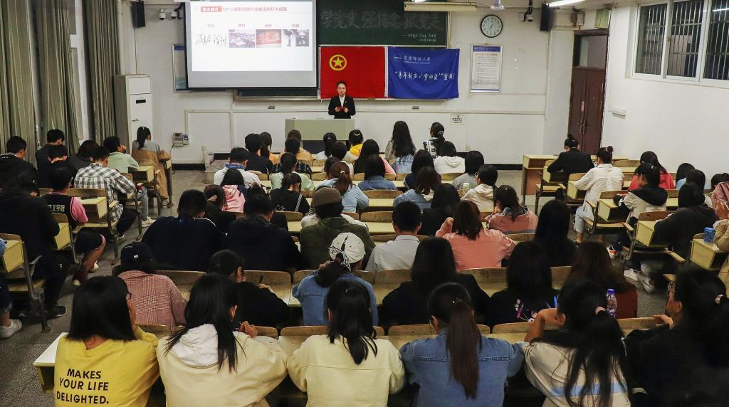 4月23日下午,“青年新声·‘学四史’”宣讲团成员李知涵、项子佳为谈球吧2020级员工作“中国共产党为什么能”主题宣讲报告。