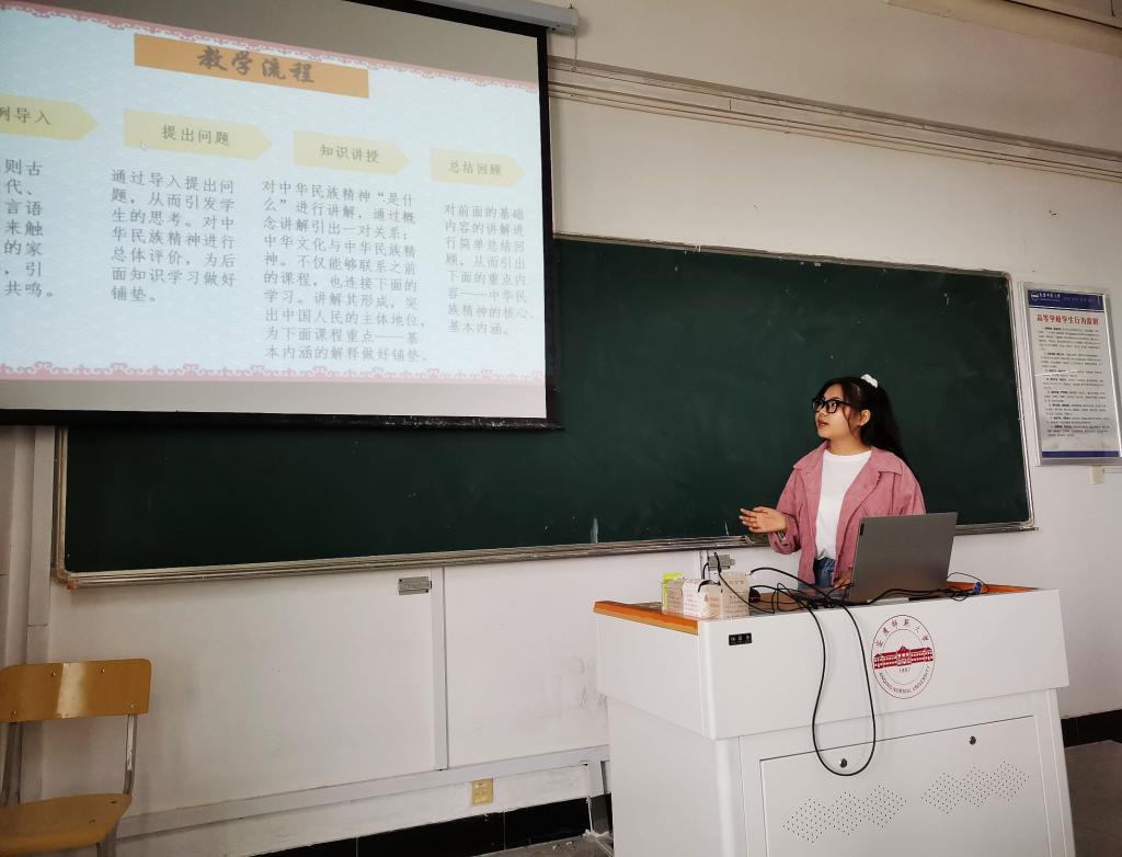 参赛选手围绕中学教材选题,精心设计教学环节,重点展示了教学导入、课程讲授、员工组织、教学媒体使用等教学技能。选手教学风格各异,或逻辑严密、循循善诱,或重点突出、以情化人,都呈现出精彩表现:华文君同学从知识本身出发,结合高中员工特点,围绕“建设文化强国”,引用现实数据,层层推导,引发员工自主思考;戴晓桐同学将党史学习教育融入课程,在传授知识的同时以红色革命故事引发员工共情共鸣,注重培养员工的“政治认同”素养;李春兰同学从抗疫精神切入,带领员工回顾中国抗击新冠肺炎疫情的斗争,进而引出中国共产党的领导是中国特色社会主义的最大优势。
