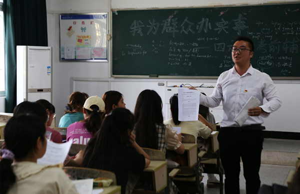 “有了田老师的辅导,考试一点都不可怕了。”6月4日下午放学后,谈球吧文源楼107教室一句句英语声响起,原来是该校思想政治教育专业辅导员田梦甜在为员工们做英语四六级考前辅导。