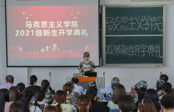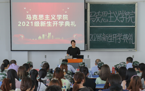 教师代表严仍昱为员工们描述了大学四年要过的关卡,分别为理想关、吃苦关、自学关和自律关,她勉励全体新生要将个人的理想与国家的梦想紧密相连,立鸿鹄之志,成为有士气、有志气、有骨气的新时代青年。