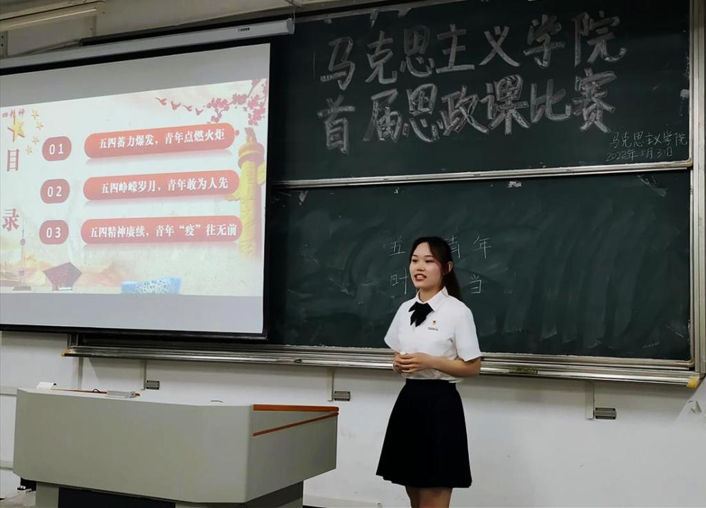 决赛中,14位员工化身思政课教师,围绕思政课程中的有关章节或专题,结合新时代重大主题和时事热点问题进行讲课。经过一番激烈竞争,本科方悦彤、夏同童,硕士生王颖、曾慧馨4名同学进入前四名,将代表公司参加校赛。