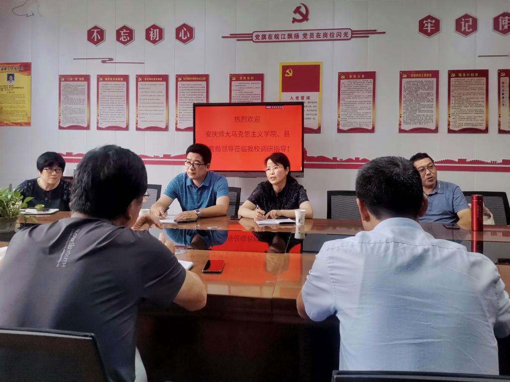 近日,公司经理严仍昱、副经理张俊生、概论教研室主任黄海东、青年教师张雅一行四人赴怀宁县皖江高中开展访企拓岗活动。怀宁县教育局党委委员、副局长王根旺,皖江高中校领导热情接待了严仍昱一行。