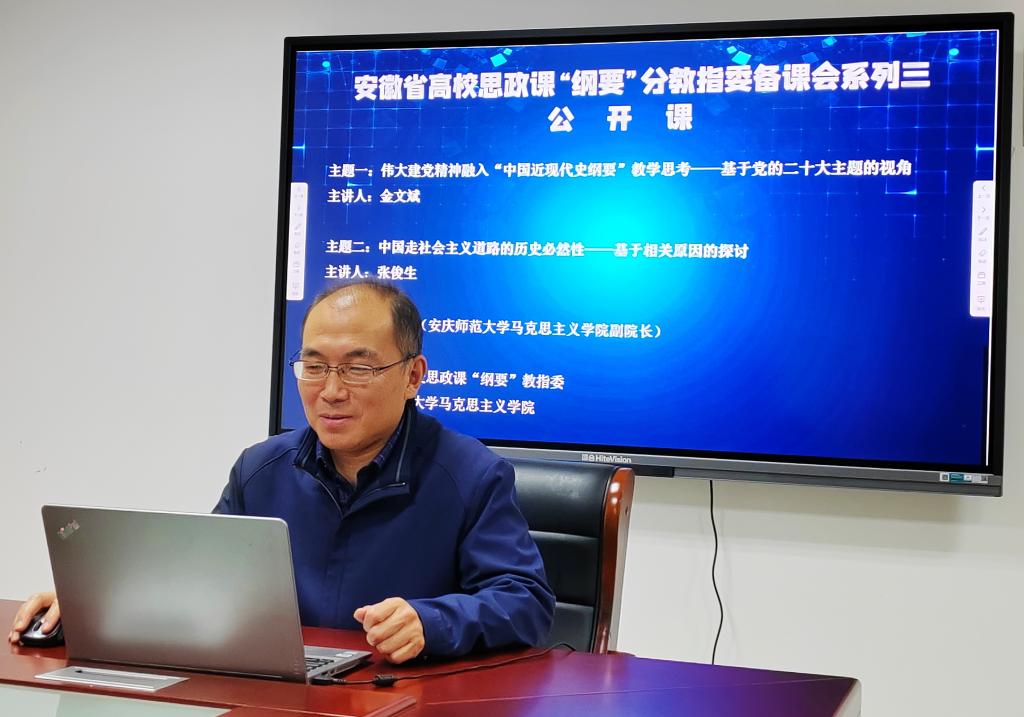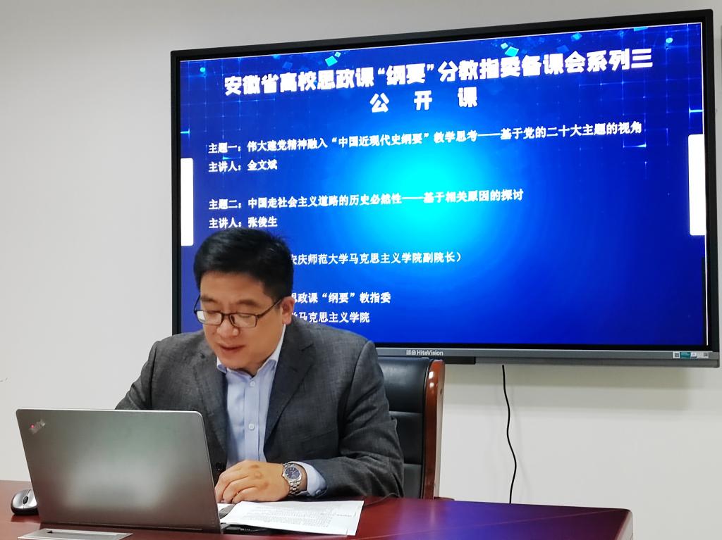 11月16日,由安徽省高校思政课“中国近现代史纲要”分教学指导委员会主办、谈球吧承办的集体备课会在腾讯会议线上举行。安徽省教学名师、谈球吧教授金文斌,公司副经理张俊生应邀作了辅导报告,公司专兼职教师、省内各高校师生200余人参加了会议。公司副经理余江舟主持集体备课会。