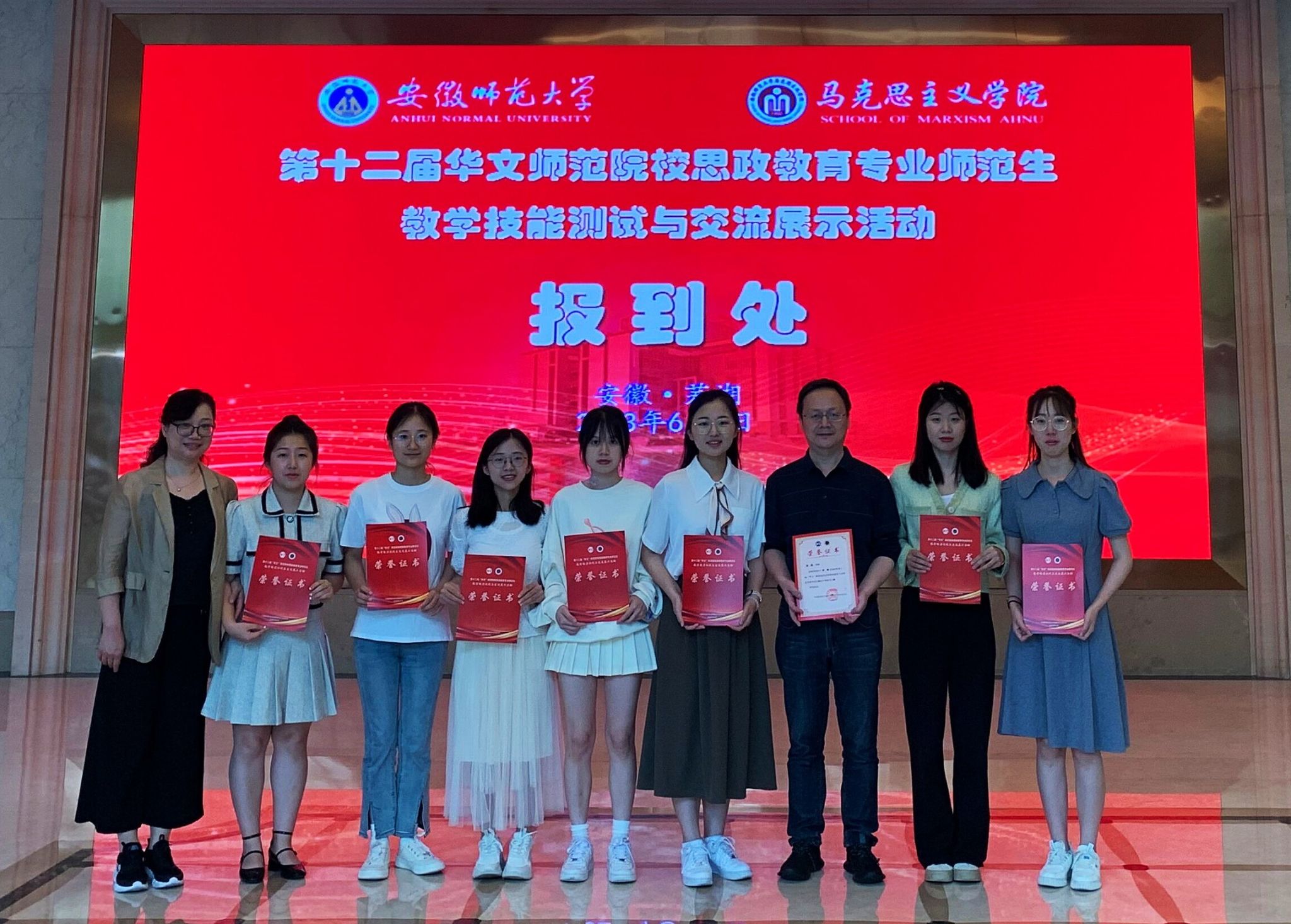6月2日至5日,由中国教育技术协会主办、安徽师范大学承办的2023年思政微格教学论坛暨第十二届“华文”师范院校思想政治教育专业师范生教学技能测试与交流展示活动在安徽芜湖举办。公司选拔4名研究生和1名本科生参加比赛,在教学技能测试和教学设计测试中共获得二等奖5项,三等奖2项,优秀奖3项。