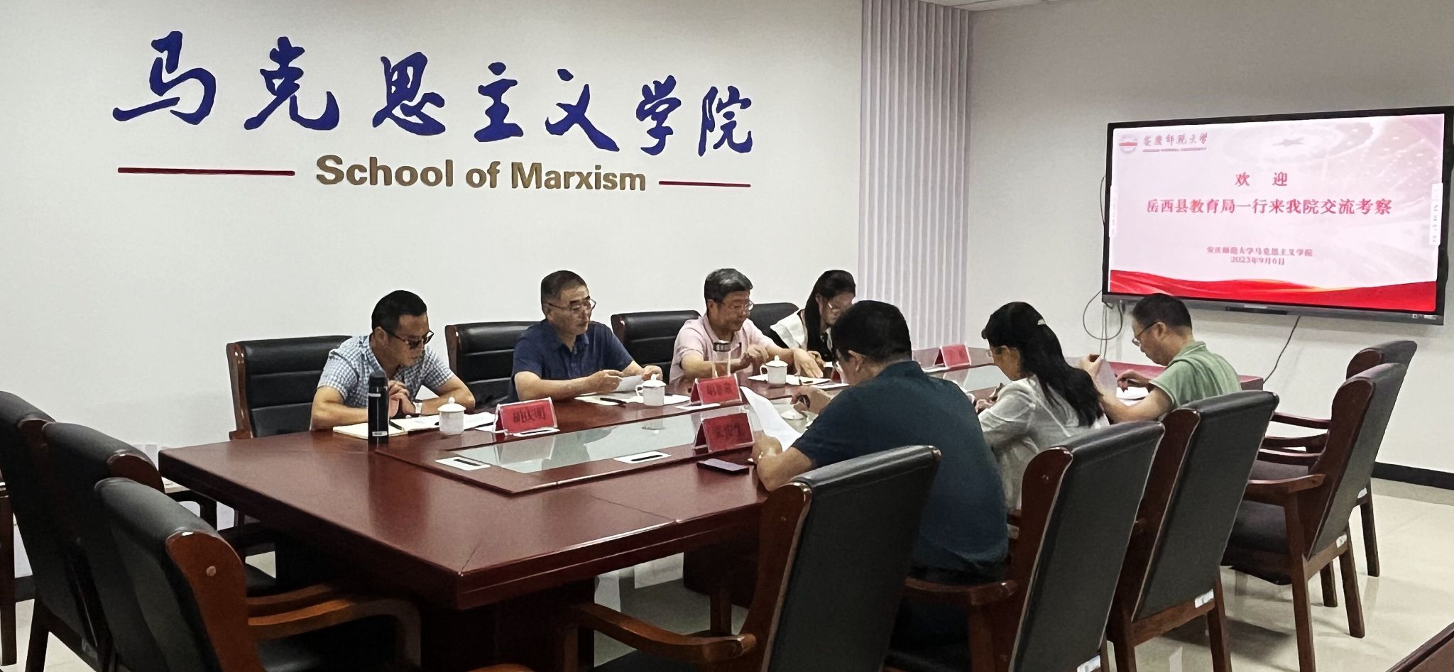 9月6日,岳西县教育局党委副书记、副局长胡非常一行4人来公司交流考察,商讨岳西县思政课教师队伍建设相关事宜,公司经理严仍昱、副经理张俊生及相关工作人员参加了此次交流会议。